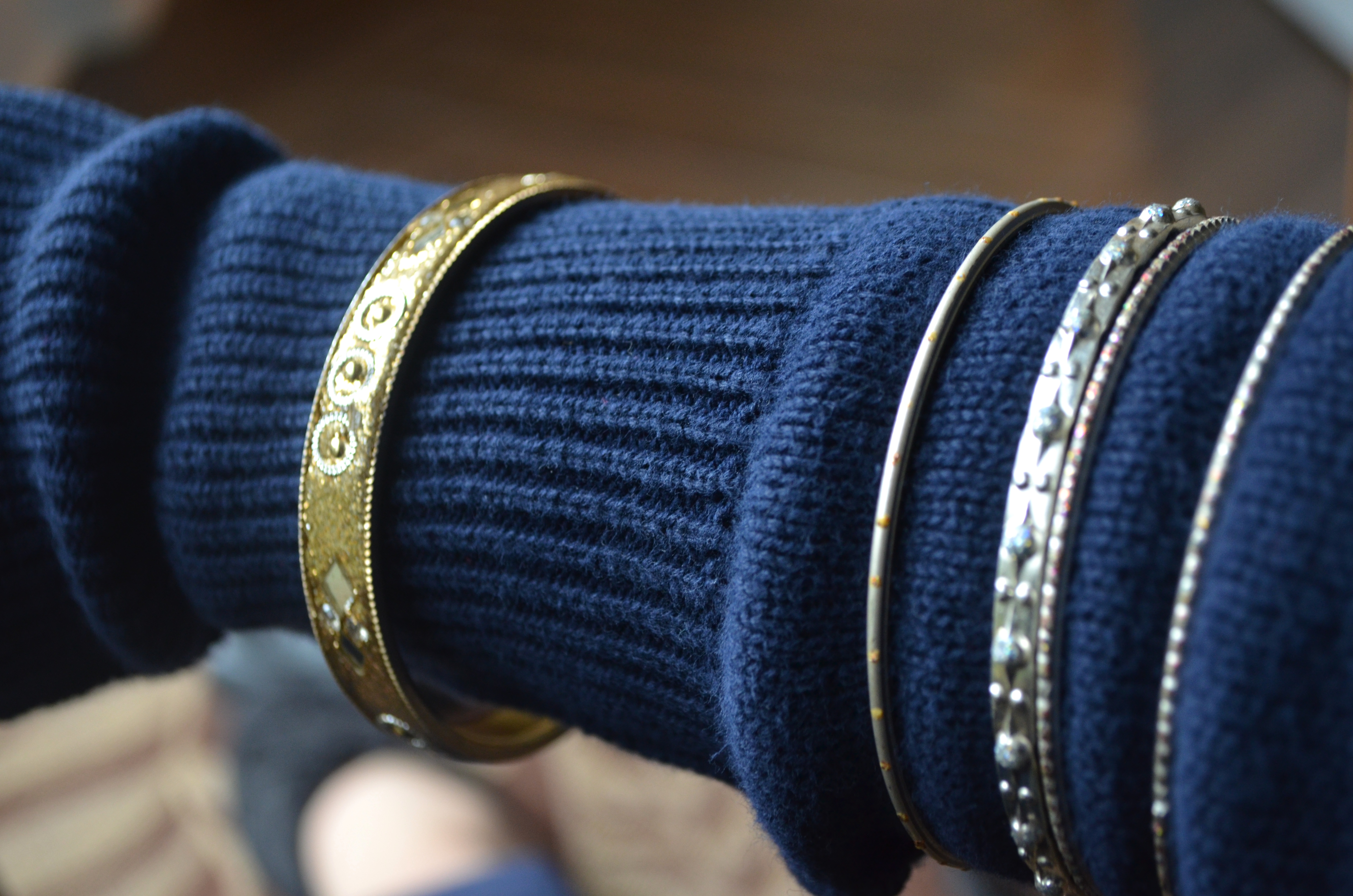 And, of course, the gold bracelets remain on top of the sleeves. But, again, if that pleaseth you not, then feel free to wear them however you like. Or not at all. It’s totally up to you.