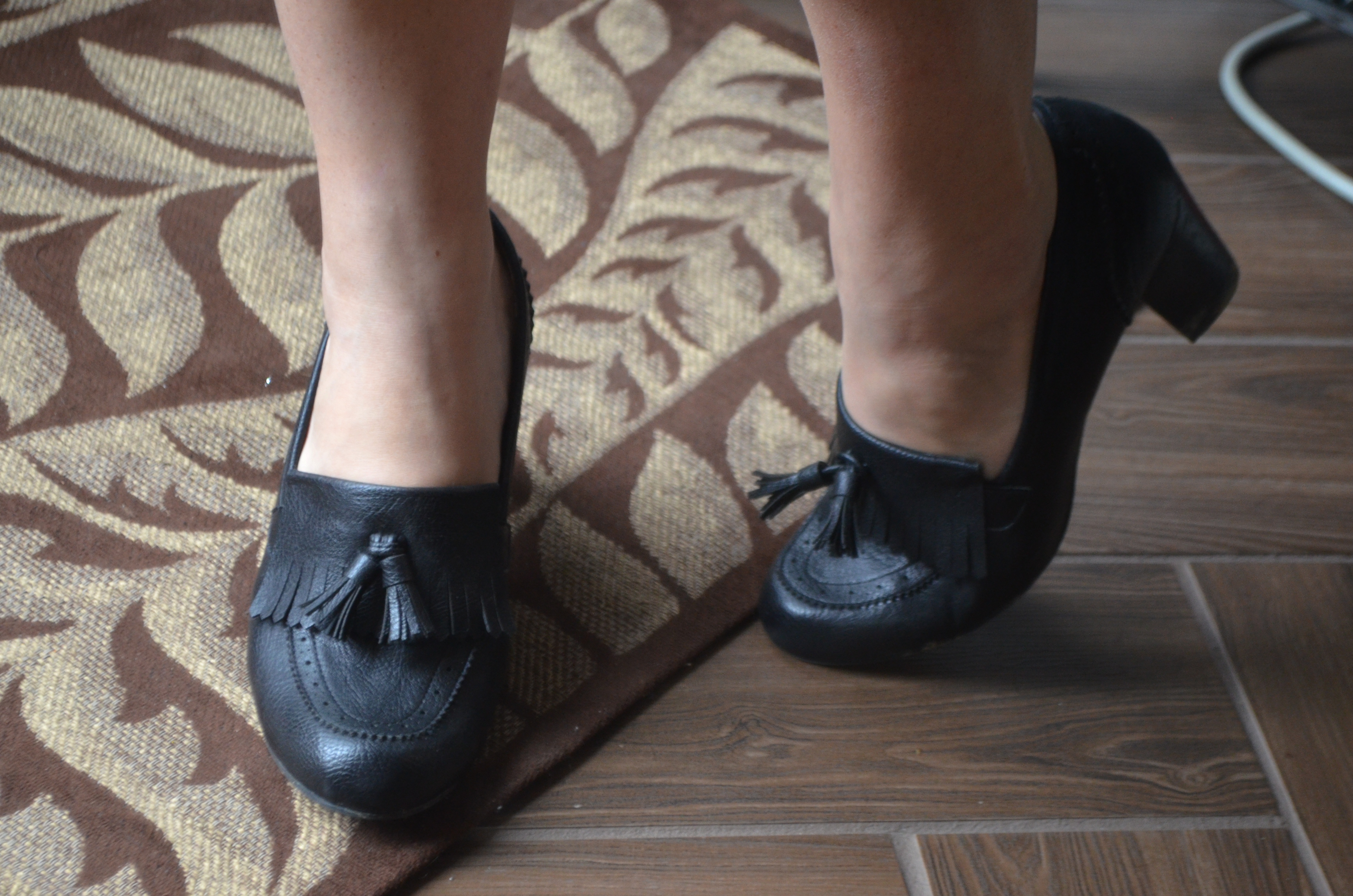 Taking the classic, black loafer to the next level with a heel? Okay! (Because plain, black, flat shoes all the time is bo-ring!)