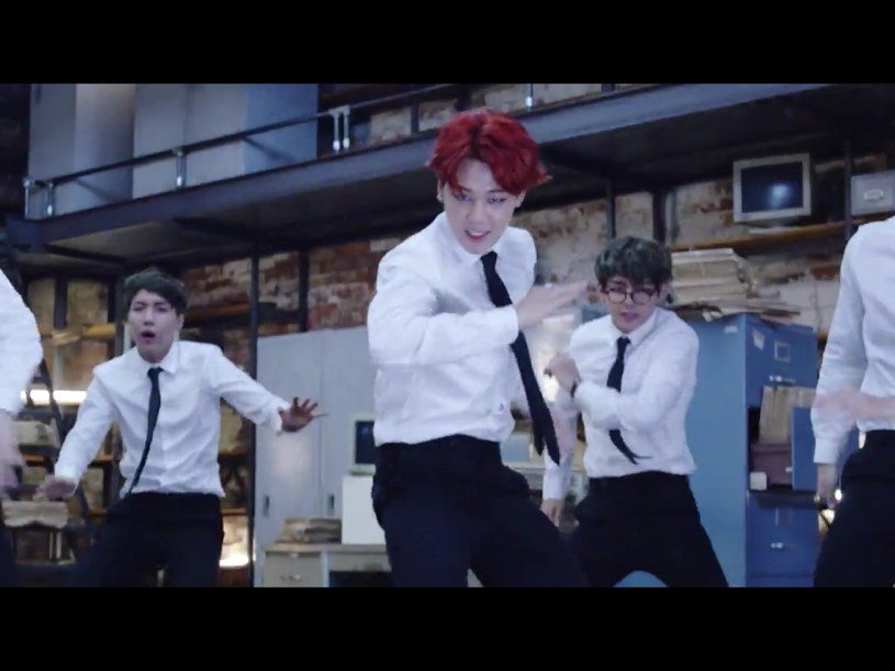 Nothing in this series has changed: “Jjeoreo” is still awesome, Bangtan is still awesome, and I still have a want to try to recreate said awesomeness with fashion for my own (as well as everyone else’s) personal fun. So let’s move onto the third installment of Bangtan “Dope” style with our dear Jimin — as well as the rest of the video’s office clerks.